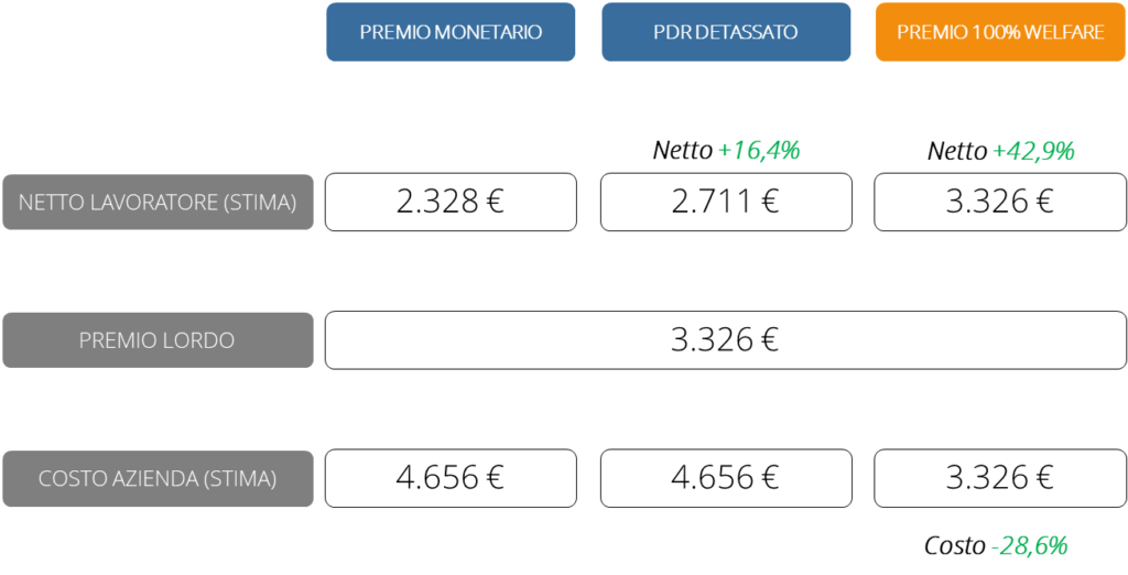 Come detto, i benefici economici per l’impresa e per il lavoratore sono potenzialmente notevoli in confronto con gli strumenti tradizionali, grazie alla totale esenzione fiscale e contributiva.